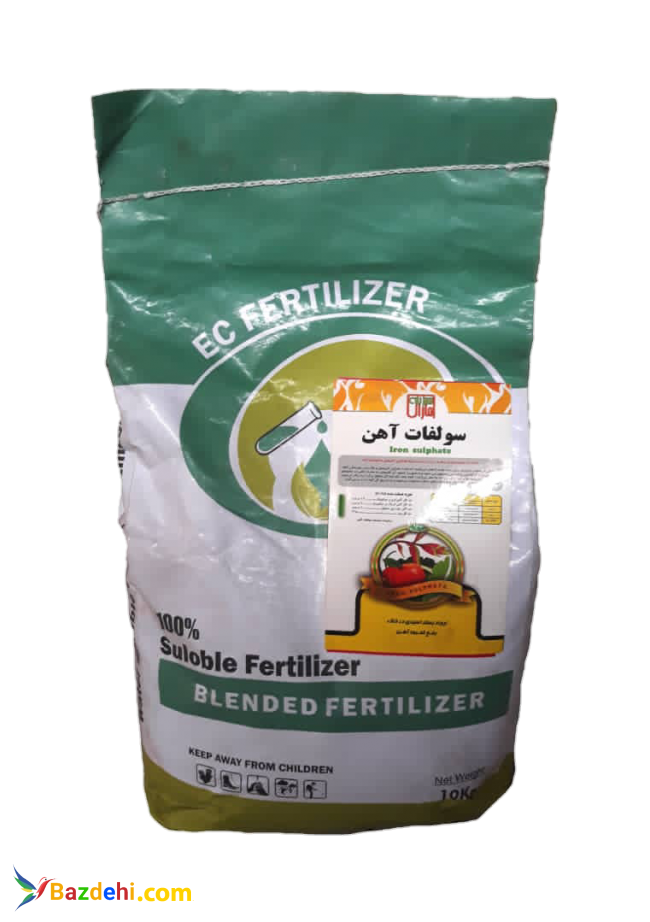 حداقل آهن فرو بر مبنای (fe) : ……………………………………%19 حداقل آهن فریک بر مبنای (fe) : …………………………………..%1 حداکثر ماده غیر محلول : ……………………………………………1% ود سولفات آهن است. سولفات آهن برای مصارف خانگی یک کود امن است. می توان آن را در سبزی کاری و باغ های گل طبق دستورالعمل مصرف مورد استفاده قرار داد. در استفاده از این کود بایستی با تجزیه و تحلیل خاک، میزان کمبود آهن و مشخصات آسیب شناسی گیاه را مورد بررسی قرار داد. کاربرد سولفات آهن بسیار وسیع است. • این کود سولفاته برای خاک و شاخ و برگ درختان بسیار مفید و ضروری است. • جهت اصلاح کمبود آهن چمن زار ها و باغ ها. • موجب تقویت رنگ سبز گیاهان و چمن ها می شود. • کود ایده آل برای اصلاح کمبود آهن بسیاری از گیاهان است. • بسرعت و بسادگی خزه و شبدر چمن را کنترل می کند.
