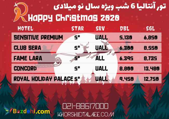 تور آنتالیا ویژه کریسمس 2020 6 شب 7 روز 6 و 7 دی ماه پرواز ماهان ایر