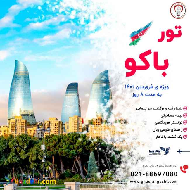 ویژه ی بهار 1401 7 شب و 8 روز پرواز: ایران ایر خدمات: بلیط رفت و برگشت هواپیمایی ترانسفر رفت و برگشت فرودگاهی 7 شب اقامت در هتل با صبحانه راهنمای فارسی زبان بیمه ی مسافرتی یک گشت با ناهار جهت کسب اطلاعات بیشتر باما تماس بگیرید 021-88697080
