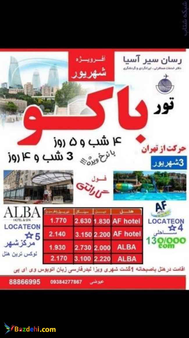 تور باکو و دفتر خدمات مسافرتی ، ایرانگردی و گردشگری ، تورهای داخلی و خارجی