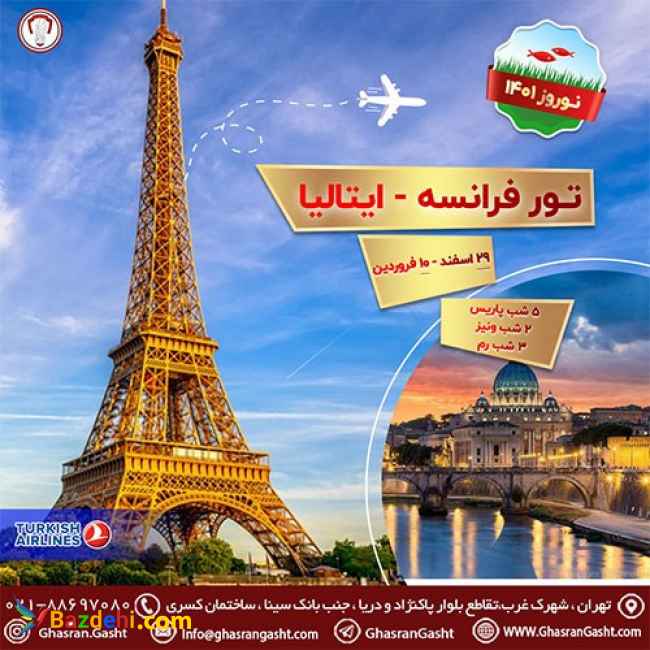 تور ترکیبی فرانسه-ایتالیا ویژه نوروز 1401