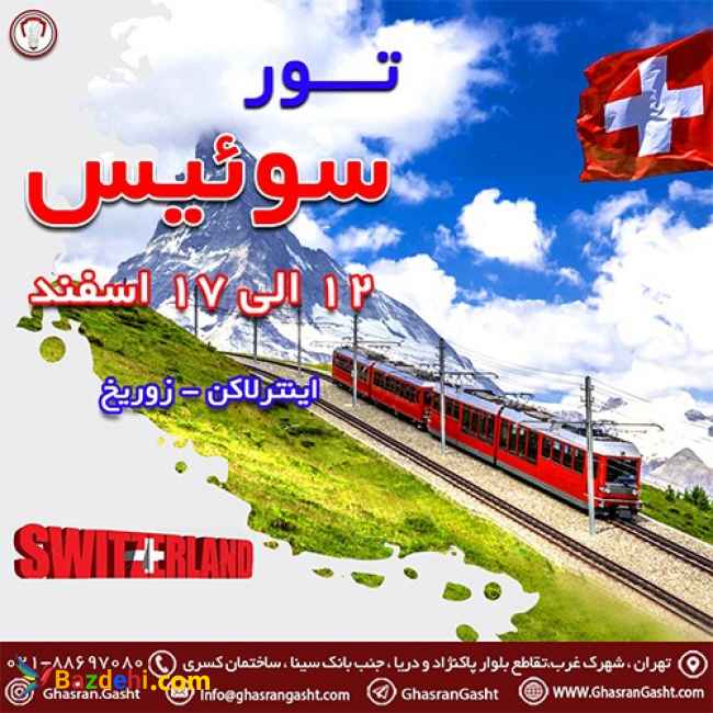 تور سوئیس 5 شب اقامت در سوئیس تور اینترلاکن-زوریخ با بازدید شهری و اطراف شهر 12 اسفند الی 17 اسفند ماه خدمات: 4شب اقامت در هتل 4ستاره با صبحانه 3 روز بازدید طبق برنامه ورود راهنمای فارسی زبان برای اطلاعات بیشتر با مشاوران ما در قصران گشت تماس بگیرید 021-88697080 ghasrangasht.com