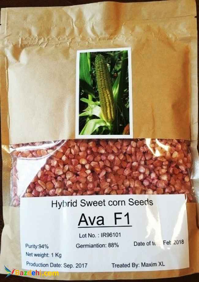 شرکت کاویان رشد دانش ذرت شیرین رقم آوا (AVA F1)( دو منظوره: بلال شیرین و علوفه ای) شرکت کاویان رشد دانش مشخصات: قوه نامیه: 89% (ثبت شده در موسسه ثبت و گواهی بذرایران) درصد قند: 1.91 درصد نشاسته: 16.29 میان رس 85 تا 100روزه تعداد دانه روی بلال 36الی 44عدد تعداد دانه دور بلال14الی 18عدد پرمحصول و با بوته ای بسیار قوی متحمل به بیماریهای سیاهک و فوزاریوم مناسب برای تازه خوری و صنایع تبدیلی قابلیت دانه شوندگی بسیار خوب محصول در بسته های 1 و 5 و 20 کیلوگرمی بوجاری و ضد عفونی بسته بندی شده است. {خواستگاه اصلی این رقم کشور یوگسلاوی سابق میباشد و سالها درکشورمان مطالعه و فرآوری شده است, قیمت پایین آن به دلیل رقابتی بودن با سایر رقم های خارجی می باشد} جهت هماهنگی برای مشاوره و خرید با شماره تلفن : 09126339564(مهندس رضا معینی) و یا 09125498612(مهندس لواف) تماس بفرمایید. {{Reza Moeini- رضا معینی کارشناس ارشد ذرت دانه ای و سیلویی با 35 سال سابقه خدمت در سازمان تحقیقات ذرت و گیاهان علوفه ای و همکاری در معرفی ارقام 705 و 706 و... استان البرز}} هر کیلو 155000 تومان www.Kavianagro.com