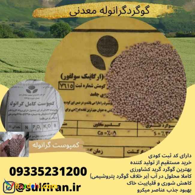 فروش گوگرد معدنی شماره تماس: ۰۹۳۳۵۲۳۱۲۰۰ ۰۹۱۹۰۸۵۶۹۹۵ آدرس سایت: www.sulfiran.com آدرس ایمیل: این آدرس ایمیل توسط spambots حفاظت می شود. برای دیدن شما نیاز به جاوا اسکریپت دارید آدرس اینستاگرام: https://www.instagram.com/sulfiran.ir لینک ویدئو آپارات: https://www.aparat.com/v/DheSn آدرس: سمنان معدن دلازیان فروش گوگرد معدنی سمنان خرید مستقیم گوگرد معدنی پودر: خرید گوگرد معدنی گرانوله امکان خرید مستقیم گوگرد معدنی با دانه بندی سایز ،پودر یا گرانول برای کشاورزان محترم در تناژهای مختلف بصورت فله یا کیسه فراهم است. فروش مستقیم گوگرد معدنی از بزرگترین معدن گوگرد کشور: برای خرید مستقیم گوگرد از معدن سمنان با ما در تماس باشید. خواص گوگرد معدنی سمنان خواص گوگرد معدنی بعنوان عنصر تغذیه کننده : غذای اصلی درختان و گیاهان پروتئین است،گوگرد یکی از عناصر اصلی در تولید پروتئین می باشد. گوگرد معدنی سبب می شود که محصول نهایی با کیفیت تر، چرب تر ،دارای عناصر غذایی مفید تر مانند پروتئین باشد ،همچنین گوگرد معدنی گیاهان را در برابر آفات و بیماری های قارچی و همچنین تنش های دمایی و محیطی مقاوم می کند. خواص گوگرد معدنی بعنوان بهترین اصلاح کننده خاک: اغلب خاک های کشاورزی کشور دارای میزان بسیار زیادی از املاح از جمله آهک و املاح نمکی می باشند، در صورت وجود این املاح معدنی جذب عناصر ریز مغذی از جمله آهن کلسیم منیزیم و روی دچار اختلال می گردد، بهترین گزینه برای رفع شوری وخنثی نمودن اهک خاک استفاده از گوگرد معدنی است. گوگرد معدنی سمنان با کاهش ph خاک سبب خنثی شدن آهک می شود و با توجه به این که دارای مقادیری سولفات کلسیم نیز می باشد با جایگزینی یون کلسیم با سدیم موجود در خاک در رفع شوری خاک نیز بسیار موثر است. مبارزه ارگانیک با آفات با گوگرد معدنی سمنان: گوگرد از گذشته تا به امروز بعنوان یک قارچ کش و کنه کش ارگانیک استفاده شده است.گوگرد معدنی سمنان در رفع آفات و بیماری هایی از جمله آفت پسیل پسته، کرم گلوگاه انار ،بیماریهای قارچی چون گموز، نماتد و شانکر کاربرد دارد. گوگردمعدنی سمنان را می توان به صورت محلول پاشی یا گرد پاشی استفاده نمود. کاربرد مهم دیگر گوگرد معدنی سمنان، استفاده از آن برای پوساندن کود های دامی است. در این روش پوسیدن در زمان کمتری اتفاق می افتد و آفات و بیماری های قارچی همراه کود از بین می رود. فروش گوگرد معدنی پودر: فروش گوگرد معدنی پودر بصورت فله و یا کیسه های 25کیلوگرمی انجام میشود. فروش گوگرد گرانول معدنی: مجموعه ما فروش گوگرد معدنی گرانول را بصورت فله یا بسته بندی کیسه ای با داشتن کد ثبت کودی انجام می دهد. خرید گوگرد معدنی سایز: برای خرید گوگرد معدنی با دانه بندی سایز برای استفاده در دستگاه کود پاش با ما تماس بگیرید. فروش گوگرد گوگرد گوگرد معدنی فروش گوگرد معدنی خرید گوگرد معدنی گوگرد معدنی سمنان فروش گوگرد معدنی پودر فروش گوگرد گرانول معدنی فروش گوگرد معدنی گرانول گوگرد معدنی سمنان فروش گوگرد مدنی سمنان خرید گوگرد معدنی سمنان گرد گوگرد معدنی قیمت گوگرد معدنی بهترین گوگرد معدنی بهترین قیمت گوگرد معدنی قیمت گوگرد پودری معدنی قیمت کود گوگرد خواص گوگرد معدنی معدن گوگرد گوگرد معدنی برای درخت عرضه کننده گوگرد معدنی گوگرد معدنی ارگانیک خرید اینترنتی گوگرد معدنی کود گوگرد معدنی خواص گوگرد معدنی قیمت گوگرد پودری رفع شوری خاک چرا گوگرد معدنی فروش گوگرد فله ای فروش گوگرد کیلویی قیمت هر کیلو گوگرد معدنی اصلاح کننده خاک بهترین اصلاح کننده خاک خرید مستقیم گوگرد معدنی