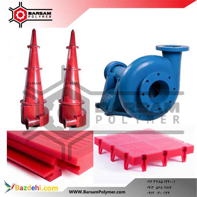 تولید انواع قطعات پلی یورتان توری سرند پلی یورتان پینی و کشویی , 4پین طرح مولتوتک خشک کن و دانه بندی از چشم 150 میکرون به بالا انواع پمپ دوغاب( اسلاری) با لاینر فلزی و لاستیکی و پلی یورتان انواع سیکلون تمام پلی یورتان- لاینر پلی یورتان- لاینر لاستیکی لاینینگ انواع فلنج،زانویی و لوله با مواد ضدسایش و ضدخوردگی پلی یورتان پیگ پلی یورتان چرخ پلی یورتان دستگاه خشک کن توری سرند خشک کن پنل پلی¬یورتان پنل سرند سگمنت سگمنت سرند مش سرند مش پلی یورتان مش خشک کن سرند آبگیر آبگیری آبگیر پلی¬یورتان توری آبگیر کاشی سرند هیدروسیکلون سیکلون سایکلون جداکننده پلی¬یورتان جاکننده معدن سرند معدن سنگ شکن غلطک پلی یورتان کوپلینگ و پکینگ پلی یورتان پروانه پمپ پلی یورتان پوسته پمپ پلی یورتان هیدروسیکلون تمام پلی یورتان از سایز 2اینچ به بالا دوک پلی یورتان شیت پلی یورتان راد پلی یورتان لوله تمام پلی یورتان لاینینگ پلی یورتان نازل آبپاش قطعات صنعتی ضدسایش 09171326058 09120400124 09125681187 026-36311742 026-37851440 026-37851441