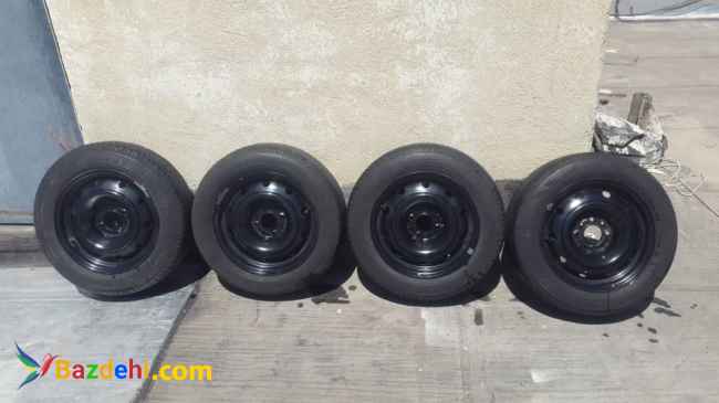 چهار حلقه رینگ و لاستیک بالانس شده R15×65×185، روی ماشین سمند نصب بوده،فقط یکی از لاستیکها پنچر است و مابقی بدون پنچری ۵۰ تا ۶۰ درصد. قیمت چهار حلقه با هم چهارصد و بیست هزار تومان