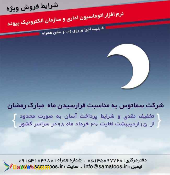 شرایط ویژه و استثنایی فروش اتوماسیون اداری تحت وب پیوند در ایام ماه مبارک رمضان