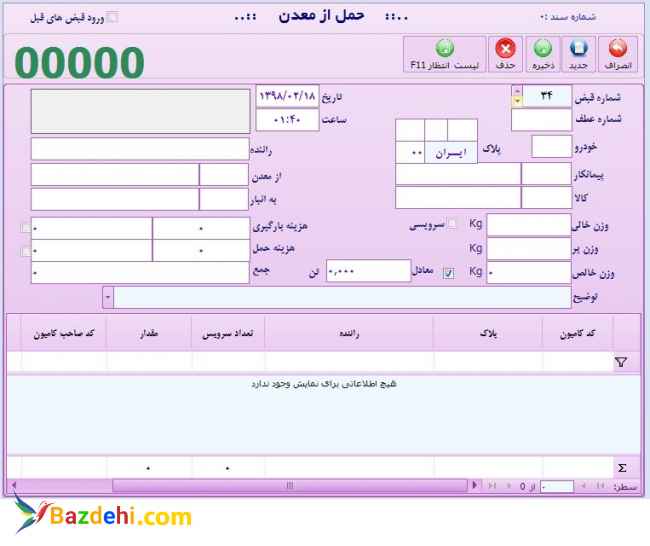 ثبت حمل از معدن و اعمال کرایه حمل و بارگیری در حساب راننده و لودر