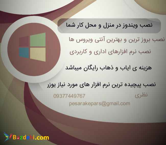 * نصب ویندوز در منزل و محل کار شما بدون هزینه ی ایاب و ذهاب * تعمیر فلش های آسیب دیده ی نرم افزاری و بد سکتور تا 80 درصد شانس بازگشت از کما ... * تایپ پذیرفته میشود ... ️نصب و آپدیت تمامی درایوها و نرم افزار های سیستم را مهمان ما باشید️ دیگر نیازی به بیرون آوردن کامپیوتر خود نیست فقط و فقط با یک تماس بدون هیچ زحمتی کامپیوتر خود را نجات دهید...