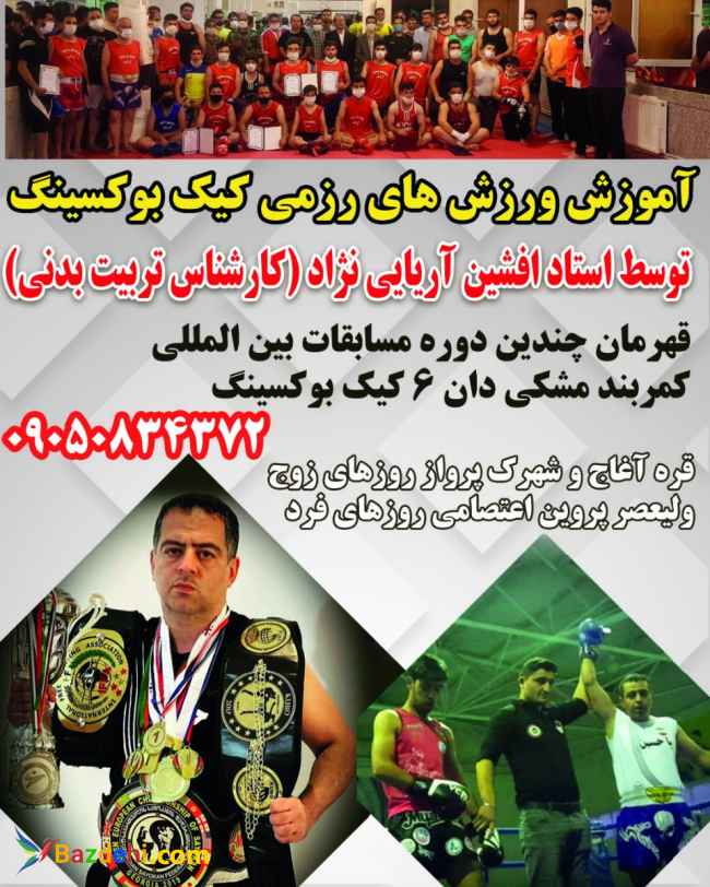 آموزش ورزش های رزمی کیک بوکسینگ درتبریز توسط استاد افشین آریایی نژاد قهرمان چندین دوره مسابقات بین المللی (کارشناس تربیت بدنی) آموزش مبارزات آزاد رینگی آموزش عمومی و خصوصی در تمامی رده های سنی