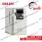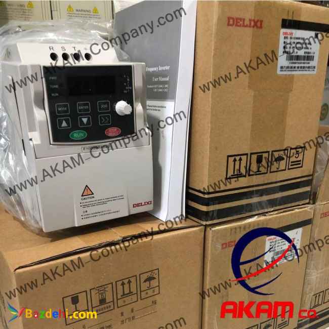 اینورتر دلکسی (DELIXI Inverter) اینورتر که با نام درایو نیز شناخته می شود، در لغت به معنای معکوس کننده می باشد. اینورتر نوعی کنترل کننده ی دور موتور است که وظیفه ی اصلی این وسیله تبدیل جریان مستقیم به متناوب است. اینورتر با علامت اختصاری نیز VFD شناخته می شود. امروزه کاربرد اینورتر دامنه وسیعی را فرا گرفته است و در بسیاری از صنایع خصوصاً کارخانجات معدنی و فرآوری مواد معدنی مورد نیاز است. اینورتر (Inverter) مبدل برق دستگاه الکترونیکی است که جریان مستقیم (DC) را به جریان متناوب (AC) تبدیل می کند. جریان AC تبدیل شده می توانند بر اساس نیاز در هر ولتاژ و فرکانسی باشد که بوسیله مدارها کنترل می شود. اینورتر یک نوسان ساز الکترونیکی قدرت بالا است. دلیل این نام گذاری آن است که این دستگاه عمل عکس مبدل برق AC به DC متداول را انجام می دهد. درواقع اینورتر یا درایو AC به دستگاهی گفته می شود که به کمک آن می توان سرعت یک موتور AC سه فاز را بدون آنکه قدرت و گشتاور موتور کاهش یابد، کنترل کرد. اینورترها در ظرفیت های مختلف ساخته می شوند. ورودی اینورترها از نظر ورودی اینورترها به دو دسته تک فاز و سه فاز تقسیم می گردند. البته خروجی همه آن ها سه فاز است. برای اینورترهای با توان بالای ۳ اسب فقط از ورودی سه فاز استفاده می گردد. ویژگی اینورترها کاهش انرژی مصرفی و لذا کاهش هزینه برق کاهش جریان راه اندازی و در نتیجه طولانی شدن عمر موتور امکان تغییر سرعت موتور امکان تغییر جهت حرکت موتور حفاظت در برابر اضافه بار امکان کار موتور در شرایطی که ولتاژ ورودی متغیر است امکان کنترل از راه دور ایجاد سرعت بیشتر از سرعت نامی موتور برنامه ریزی کردن حرکت. سایر ویژگی های اینورترها ۱- روشن و خاموش نمودن موتور بدون نیاز به قطع و وصل برق اصلی ۲- کاهش ضربه های مکانیکی و در نتیجه افزایش طول عمر مفید قسمت مکانیکی ۳- حفاظت موتور در مقابل افزایش ولتاژ و جلوگیری از آسیب دیدن موتور ۴- راه اندازی نرم موتور بدون هیچگونه ضربه به قسمتهای مکانیکی (در این حالت چنانچه بار موتور از مقدار معمول مجاز بیشتر شود ، اینورتر موتور را خاموش می نماید و به کاربر پیام اضافه بار نشان می دهد) ۵- جلوگیری از گرم کردن و در نهایت سوختن موتور در کاربرد هایی که موتور به طور مداوم چپگرد و راستگرد و یا خاموش می شود. ۶- اینورتر به صورت هوشمند میزان بار وارده به موتور را تشخیص داده و متناسب با همان بار، به موتور جریان می دهد و این جریان در بسیاری از مواقع از جریان نامی موتور کمتر است. ۷- کاهش جریان موتور به صورت اتوماتیک در هنگامی که بار موتور کم می شود. این قابلیت به غیر از کاهش هزینه برق مصرفی موجب افزایش طول عمر مفید موتور خواهد شد. ۸- امکان استفاده از برق تکفاز ۲۲۰ ولت به جای سه فاز ۳۸۰ ولت برای راه اندازی موتور سه فاز به این معنا که می توان با برق خانگی یک موتور سه فاز را کاملا به صورت عادی راه اندازی نمود. ۹- قابلیت داشتن دورهای مختلف به صورت حافظه ای و تبدیل یک موتور یک دور به یک موتور چند دور با سرعتهای دلخواه. ۱۰- امکان ایجاد فشار ثابت در کاربرد پمپها (به این ترتیب است که با تغییر دور موتور فشار مورد نظر را ثابت نگه میدارد. به عنوان مثال فشار آب یک مخزن را ثابت نگه می دارد بنابراین در هنگام مصرف آب دور موتور به صورت خودکار زیاد می شود و در هنگامی که آب مصرف نمی گردد دور موتور به صورت خودکار کاهش می یابد. بنابراین دور موتور با مقدار مصرف تغییر می نماید بنابراین آب با فشار ثابت به تمام نقاط می رسد.) ۱۱- امکان اتصال انکدر به اینورتر که باعث می شود دور یک موتور با موتور دیگر یکسان شود. ۱۲- کنترل دور به صورت خودکار درمواردی که لازم است دور موتور بسته به میزان محصول تولید شده تغییر کند. مزایای اینورتر نسبت به راه اندازی مستقیم ۱- در بسیاری از کاربردها انرژی زیادی برای راه اندازی موتور لازم است، لذا موتور با توان بالاتری را انتخاب می کنند، بنابراین میزان جریان زیادتری هم در حین کار از شبکه استفاده می کند. چنانج