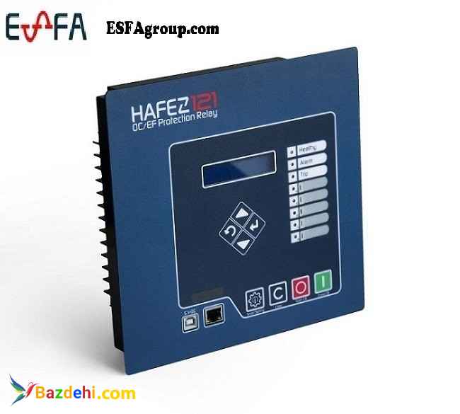 رله حفاظت جریانی نیومریکال یا رله ثانویه HAFEZ مدل 121 بر اساس استاندارد بین‌المللی به شماره IEC 60255 طراحی و ساخته‌شده است. از آنجائی که در طراحی این رله از دانش کاملاً بومی و ایرانی استفاده‌شده است، منطبق با نیازهای شبکه‌های توزیع انرژی در ایران بوده و ملاحظات موردنیاز در طراحی آن در نظر گرفته‌شده است که از این بابت باعث شده است که دارای ویژگی‌های ممتازی نسبت به رله‌های ساخت شرکت‌های معتبر خارجی باشد. رله حفاظت جریانی ثانویه حافظ HAFEZ دارای تایپ تست کامل از پژوهشگاه نیرو می باشد و در لیست تامین کنندگان شرکت توانیر و در لیست وندور تمامی شرکت های توزیع برق قرار دارد. دو سطح (Stage) در حفاظت تأخیری ANSI 51 با منحنی‌های استاندارد دو سطح در حفاظت آنی یا زمان ثابت ANSI 50 یک سطح در حفاظت تأخیری اتصال زمین ANSI 51N با منحنی‌های استاندارد دو سطح در حفاظت آنی اتصال زمین ANSI 50N حفاظت Thermal Over load (ANSI 49) دو سطح حفاظت جریان مؤلفه منفی (ANSI 46-Negative Sequence) واحد تشخیص قطع سیم (Broken Conductor) کنترل دیماند (Demand Control) حفاظت خرابی کلید (ANSI 50BF-Circuit Breaker Failure) واحد مانیتورینگ محفظه قطع کلید (Wear Condition) و تعداد دفعات عملکرد مکانیزم فرمان واحد وصل مجدد (ANSI 79-Auto Reclose) حفاظت بار سرد (ANSI51c-Cold Load Pickup) تشخیص جریان هجومی برای قفل واحدهای حفاظتی (Inrush Blocking) توابع حفاظتی آنی برای تشخیص جریان زیاد (I>>>) یا خطای زمین (I0>>>) با زمان عملکرد کمتر از یک سیکل (Sub-cycle) بهبود پایداری واحدهای حفاظت جریان مؤلفه منفی و تشخیص اتصال زمین در مواجهه با اشباعCT بهبود عملکرد واحد تشخیص جریان هجومی در مواجهه با اشباع CT تنظیم هوشمند و سریع برای حفاظت ترانسفورماتور توزیع بهبود عملکرد به‌کارگیری ترمومتر ترانسفورماتور برای صدور آلارم یا تریپ رکلوزر هوشمند انتخاب روش محاسبه دامنه جریان بر اساس هارمونیک اول یا True-rms تنظیم مشخصه و زمان ریست رله پروتکل ارتباطی Modbus RTU برقراری ارتباط با برنامه کامپیوتری از طریق پورت شبکه (TCP/IP) نرم‌افزار با محیط گرافیکی کاربرپسند برای کار با رله (تنظیم، پیکره‌بندی، مشاهده شکل موج‌های ثبات خطا و غیره) امکان ثبت وقایع و خطاها امکان ثبت شکل موج جریان و خطاها دارای تاریخ شمسی و میلادی دارای 2 ورودی دیجیتال (Digital Input) قابل‌برنامه‌ریزی دارای 5 کنتاکت خروجی (Digital Output) قابل‌برنامه‌ریزی دارای 8 چراغ سیگنال (3 عدد با کاربری ثابت – 5 عدد قابل‌برنامه‌ریزی) برای اطلاعات بیشتر به وبسایت ESFAgroup.com مراجعه فرماید.