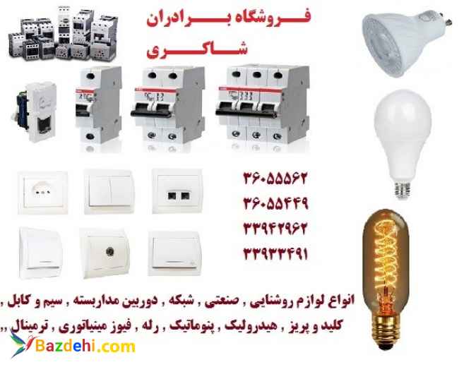 بدینوسیله به استحضار می رساند این فروشگاه با بیش از20 سال سابقه تخصصی در زمینه های زیر اماده ارائه خدمات و فروش محصولات میباشد : تمام محصولات صنعتی در برند های : Unelec - Siemens- ABB - LS - Hyundai - Legrand - Schneider و... AEG - Bosch - General - Telemecanique – Moeller فیوزهای مینیاتوری در رنج ها و برند های مختلف شامل تک پل 2پل 3پل 4پل , کلیدهای اتوماتیک , کامپکت های هوایی , انواع کنتاکتور و بی متال در رنج ها و برندهای مختلف و ...Atex . Cortem . CEAG . CNC . Warom . Stahl : EXانواع لوازم ضد انفجار از قبیل : Atex دارای گواهی نامه و تاییده نفت و گاز و پتروشیمی چراغ های 40*1 و 40*2 , انواع پرژکتور در وات های مختلف و طرح های مختلف , جانشن باکس , کلید تک پل , کلید دو پل و پریز , سوکت نری و مادگی و... انواع داکت و ترانک در سایزهای مختلف همراه با اتصالات انواع تجهیزات شبکه شامل : کیستون , پچ پنل , پچ کرد , رک های دیواری و ایستاده , سوییچ و... انواع تجهیزات سانترال : دستگاه سانترال , تابلو کروز , شانه کروز , سوکت تلفن و... انواع لوازم اندازگیری در سایز ها و رنج های مختلف از قبیل : آمپر متر , ولت متر , اهم متر , فرکانس متر , رطوبت hioky , kyoritsu , Lutron , Zieglerسنج , کسینوس متر , دما سنج , در برند های : انواع تایمرهای صنعتی و تابلویی از قبیل : تایمر 24 ساعته آنالوگ , دیجیتال , پریز دار ذخیره دار و بدون ذخیره شامل تایمرهای ثانیه , ساعتی , روزانه , هفتگی , ماهانه , نجومی , ستاره مثلث , کنترل فاز , کنترل بار , کنترل سطح مایعات , در برندهای : . Shiva Amvaj . Theben . Omron . Micro Max . Moeller . Siemens . Schneider Finder . Schrack . Omron . Schneider معمولی در ولتاژها و برند های مختلف : , Plc انواع رله های شیشه انواع تابلو برق ها در سایزهای مختلف و ورق های مختلف ( پلی کربنات , پی وی سی ) آلمینیومی , گالوانیزه و تابلوهای ریتال با رنگ کوره ای و استاتیک . تابلو برق و کنتورهای برق با تاییده اداره برق مسی , آلمینیومی و زره دار 1kv, 6kv , 20kvانواع کابل های فشار ضعیف , متوسط و فشار قوی کابل های شبکه , مخابرات , دوربین و آنتن , کواکسیال و... انواع مفصل ها و سر کابل های حرارتی و رزینی در برند های ریکم , پارس جلفا و سلپاک تمامی تجهیزات چاه ارت از قبیل : میله ارت , صفحه ارت , سیم مسی ارت , صاعقه گیر آنالوگ و دیجیتال , به همراه تمامی متعلقات و مواد کاهنده اکتیودار انواع لوازم روشنایی شامل : لامپ هالوژن , قاب هالوژن , هالوژن کامل , چراغ های تزئینی نما ( والواشر , دکوراتیو , پرژکتور , جت لایت ) چراغ های توکار و روکار , مهتابی های دیوار کوب نسل جدید و نسل قدیم در مدل های ضد آب و معمولی , انواع ریسه های شلنگی در رنگ های مختلف , انواع کلید و پریز در برند های ویکو , لگراند , اشنایدر , نیلسون , وییرا , ایران , پارت و مهسان UPSانواع ترانس های صنعتی , خانگی , خودرویی , استابلایز و هواکش های صنعتی و خانگی تمامی لوازم و قطعات هیدرولیک و پنوماتیک , فشار سنج و انواع میکرو سوئیچ ها آدرس : تهران , لاله زار جنوبی , پلاک 31 , فروشگاه برادران شاکری شماره های تماس :36055562-021 / 36055449-021 / 33942962-021 تلفکس : 33933491-021 تلگرام , واتس آپ : 09362925389