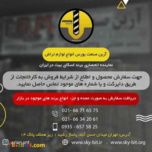 فروشگاه آرین صنعت، تامین کننده و پخش انواع مته، ایزار تراش، ابزار اندازه گیری، حدیده، قلاویز و... بصورت عمده و تک آرین صنعت نمایندگی رسمی چندین برند معتبر از جمله اسکای بیت، موتا، کرافت و ... را در اختیار دارد. این مجموعه تمام سعی خود را کرده است تا محصولات خود را با مناسبترین قیمت و کیفیت مطلوب در اختیار همکاران قرار دهد. علاوه بر این امکان خرید بصورت حضوری و غیر حضوری برا همکاران فراهم شده است تا فروشندگان در اقصی نقاط کشور بتوانند محصولات مورد نیاز خود را بصورت مستقیم و بیواسطه با قیمت مناسب تهیه نمایند.آرین صنعت سفارش مشتریان را در سریع ترین زمان با بسته بندی مناسب ارسال و بدست خریدار میرساند. همچنین همکاران عزیز با خرید عمده میتوانند از تخفیف ویژه ما نیز بهره مند شوند. شماره تماس: 02166342061 واتساپ: 09356575825 اینستاگرام: arian.snt آدرس سایت: https://sky-bit.org
