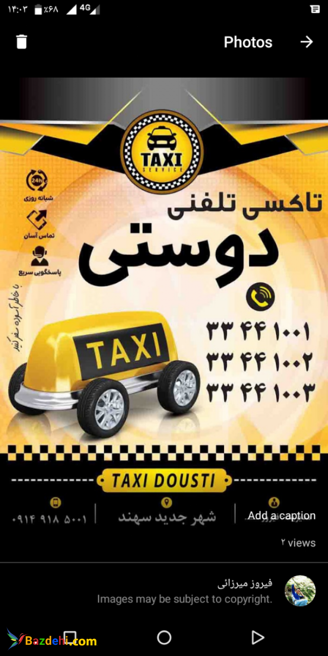 آژانس تاکسی تلفنی دوستی شهر جدید سهند 04133441001 04133441002 04133441003 اولین تاکسی تلفنی در شهر سهند