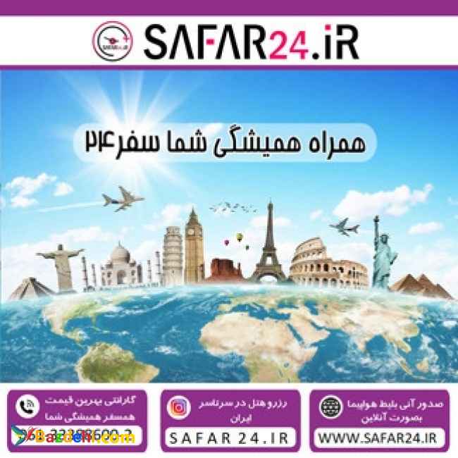 سایت فروش آنلاین سفر۲۴ مرجع تمامی بیلیط های لحظه آخری و چارتر هواپیما پوشش کلیه خطوط هواپیمایی و قطار ارزان ترین نرخ قیمت ها تورهای جذاب و شاد همرا پکیج های استثنائی و خدمات ویژه همراه پشتیبانی ۲۴ساعته استرداد انلاین در سایت راحتی و سادگی خرید جستجوی سریع و هوشمند براساس فیلتربرای راحتی شما