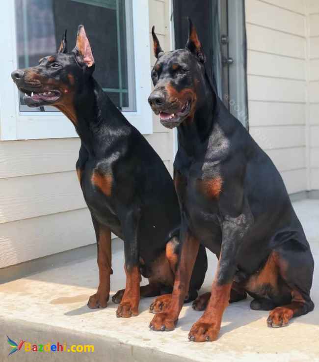سگ نژاد دوبرمن Doberman | در ناحیه آپولدا واقع در آلمان ریشه دارد و درسال ۱۹۰۰ به طوررسمی شناسائی شده است.این نژاد اندازه متوسط و ظاهری خوش تراش دارد. قدرت عضلانی زیاد آن در نگاه اول جلب توجه می کند. زیبائی و خوش رنگ و نگاری سگ نژاد دوبرمن هر تازه کاری را به اشتباه می اندازد. هوشیاری، چابکی، چالاکی عضلات و رفتار وجوه آشکاری است که درچشم هر بیننده ای جلب توجه می کند.توله سگ های دوبرمن 45 روزه نر وماده اصیل و حرفه ای با مدارک کامل