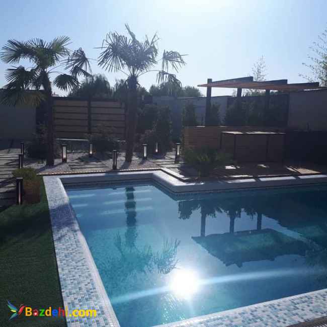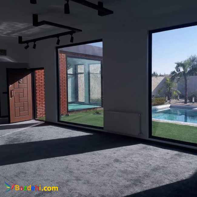 ویلا 500 متری شهرکی 120 متر بنا دو خواب مستر استخر تصفیه هوشمند آلاچیق باربیکیو محوطه سازی حرفه ای نور پردازی شده دارای آب برق گاز لوکیشن عالی منطقه برند غرب تهران