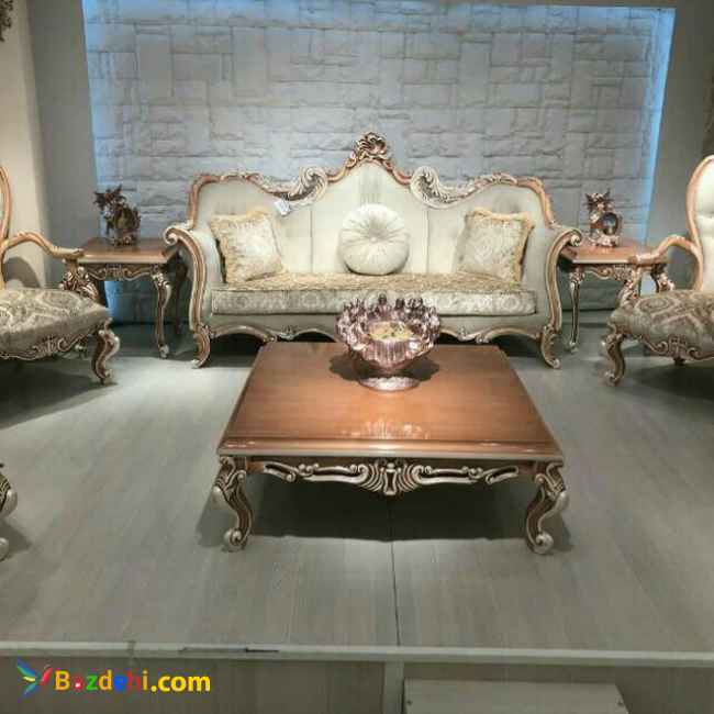 مبل استیل . تاج بلندسلطنتی با بهترین چوب های راش و گردو باهنر نمای زیبای هنرمندان منبت ملایر