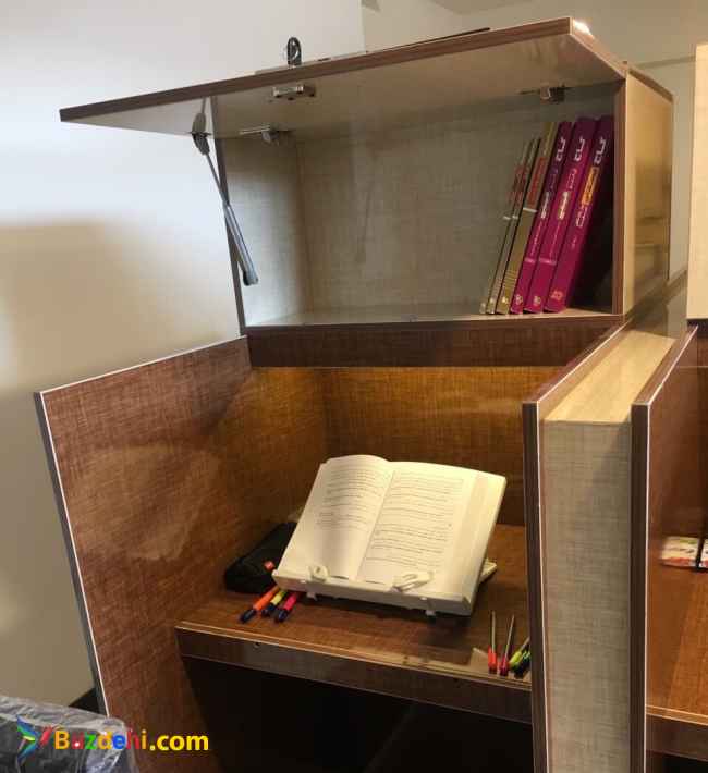 میزها داراى کمد اختصاصى قفل دار و چراغ مطاله ى مخفى با کلید مجزا و یک عدد جامدادى رومیزى مى باشند.